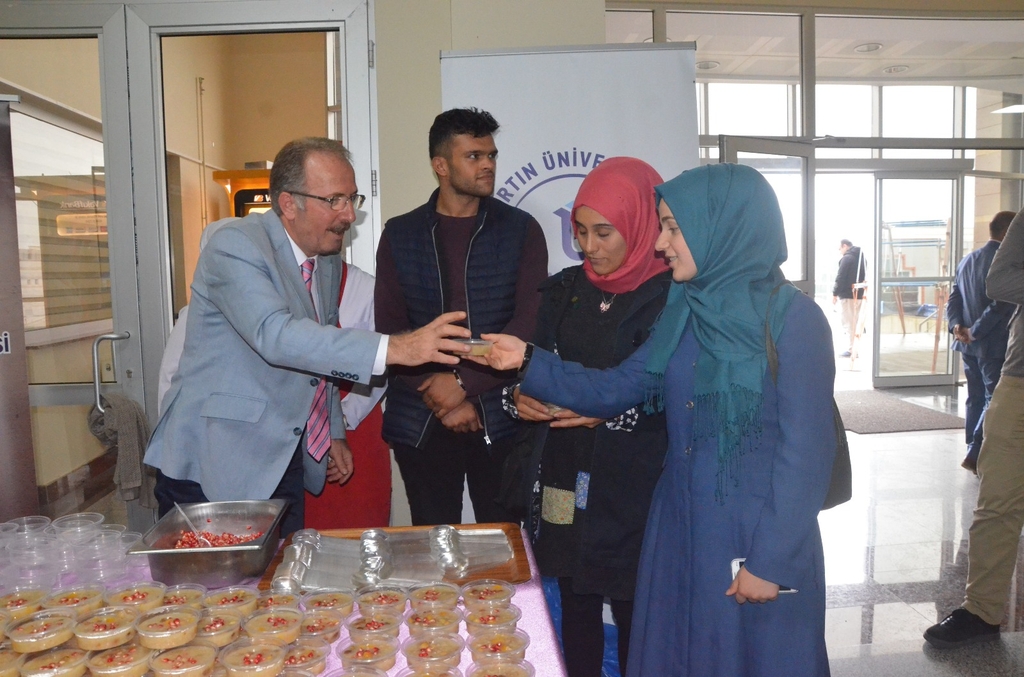 Üniversitemiz Sağlık, Kültür ve Spor Dairesi Başkanlığı (SKSD) tarafından Muharrem ayı nedeniyle öğrencilere aşure dağıtıldı.
