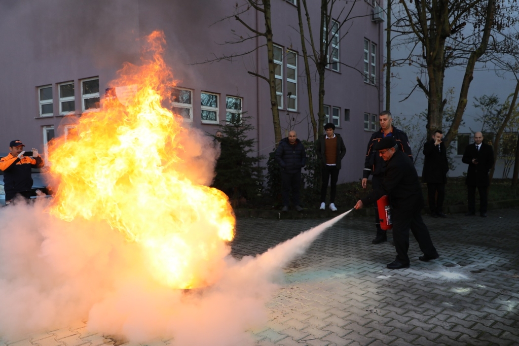 Olası bir yangın durumunda alınacak önlemlerin bilinmesi, bilinçli hareket edilerek oluşan hasarın en asgari düzeye indirilmesi, herhangi bir kargaşaya mahal verilmeden sorumluluk ve görev bilinciyle hareket edilmesinin hedeflendiği eğitim kapsamında bir tatbikat gerçekleştirildi.