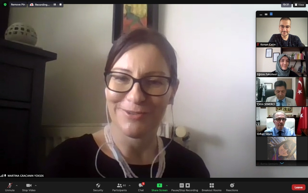 2020-2021 Akademik Yılı Bahar Dönemi başlangıcından bu yana derslerin devam ettiği Üniversitemizde ders dışı etkinliklerle de öğrencilerin gelişimi destekleniyor. Bu kapsamda eğitim dili yüzde 100 İngilizce olan Üniversitemiz Eğitim Fakültesi İngilizce Öğretmenliği Bölümü tarafından düzenlenen “Bildiğimizi Bilmediğimiz Dil” adlı konferansa ODTÜ Eğitim Fakültesi öğretim üyesi Prof. Dr. Martina Gračanin Yüksek katıldı.