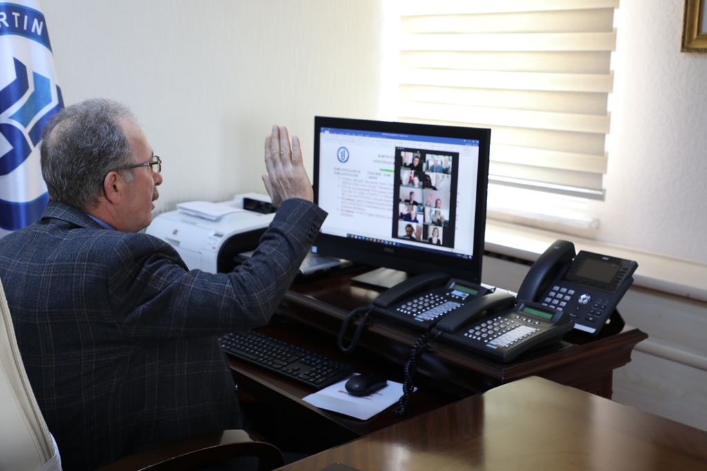 Uzaktan çalışmayı kolaylaştıran online platformlar aracılığıyla gerçekleştirilen ‘Yönetim Kurulu Toplantısı’na başkanlık eden Üniversitemiz Rektörü Prof. Dr. Orhan Uzun, salgının önlenmesi amacıyla her türlü tedbiri aldıklarının aynı zamanda da çalışmaya devam ettiklerinin altını çizdi.