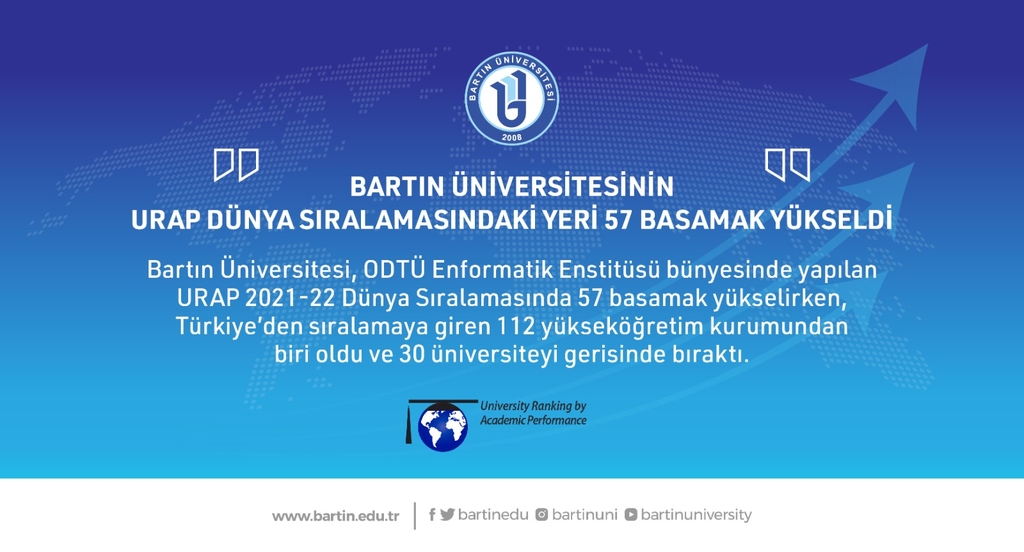 Üniversitemiz, ODTÜ Enformatik Enstitüsü bünyesinde yapılan URAP 2021-22 Dünya Sıralamasında 57 basamak yükselirken, Türkiye’den sıralamaya giren 112 yükseköğretim kurumundan biri oldu ve 30 üniversiteyi gerisinde bıraktı.