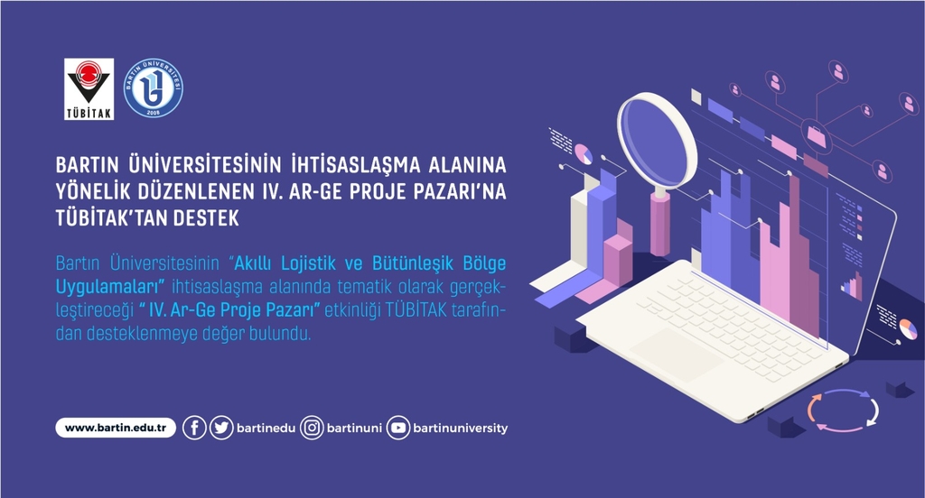 Üniversitemizin “Akıllı Lojistik ve Bütünleşik Bölge Uygulamaları” ihtisaslaşma alanında tematik olarak gerçekleştireceği “ IV. Ar-Ge Proje Pazarı” etkinliği TÜBİTAK tarafından desteklenmeye değer bulundu.